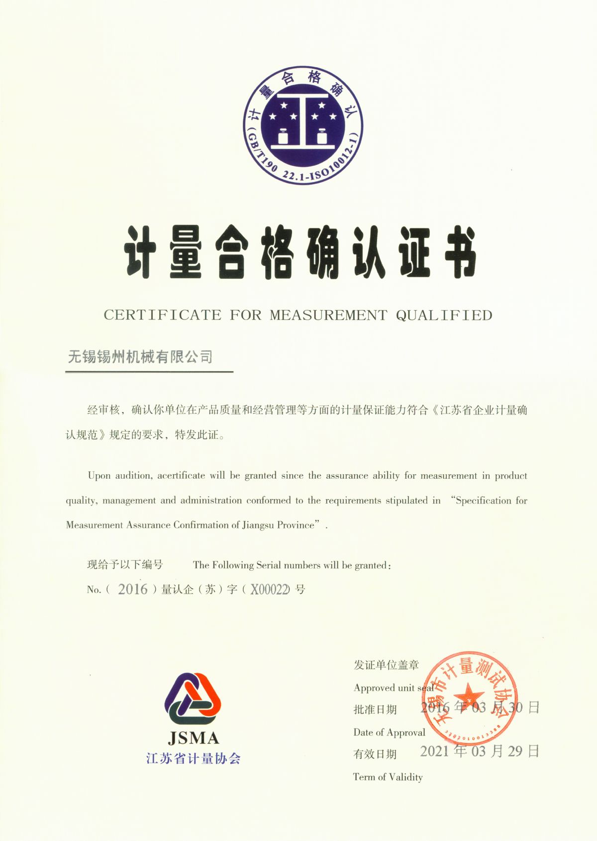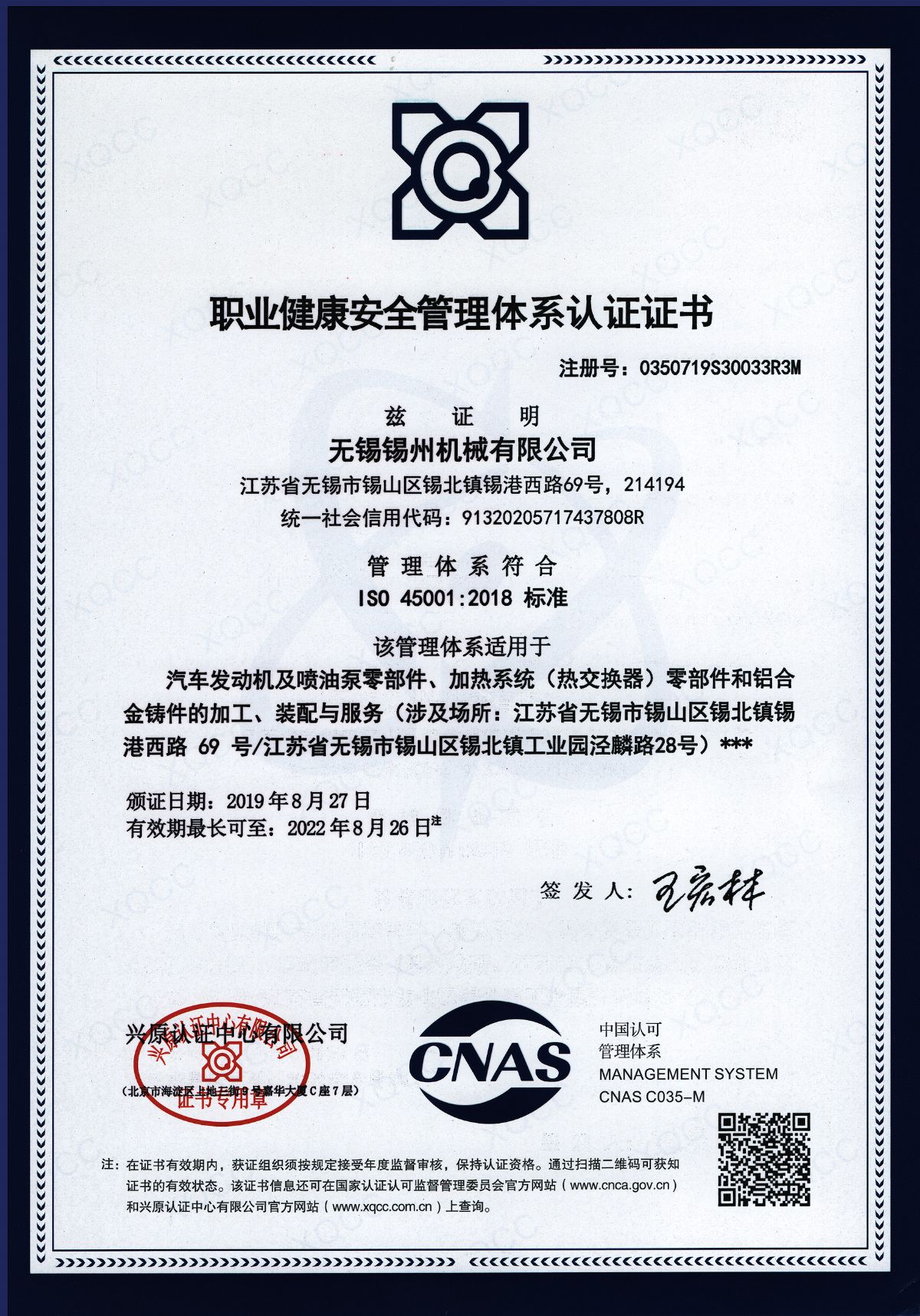 “ 以質(zhì)量求生存,以管理增效益”是錫州機械堅定不渝的經(jīng)營理念;“質(zhì)量第一、客戶至上”是錫州機械堅持不懈的追求;“ 以人為本,鑄就優(yōu)質(zhì)產(chǎn)品, 精益求精,增強顧客滿意”是錫州機械持之以恒的質(zhì)量方針。 2001年7月公司通過ISO9001:2000質(zhì)量體系認證, 2005年9月通過ISO/TS16949質(zhì)量體系認證。公司于2007年7月通過產(chǎn)品ASME認證。 通過開展以產(chǎn)品質(zhì)量為中心的企業(yè)管理,公司以先進的生產(chǎn)檢測設(shè)備、完善的質(zhì)量保證體系、嚴密的產(chǎn)品開發(fā)體系、嚴格按照標準開展產(chǎn)品生產(chǎn)管理,并開展6S現(xiàn)場管理,竭盡全力創(chuàng)造一個比較清潔、健康、安全的環(huán)境,全方位地滿足國內(nèi)外客戶的要求。